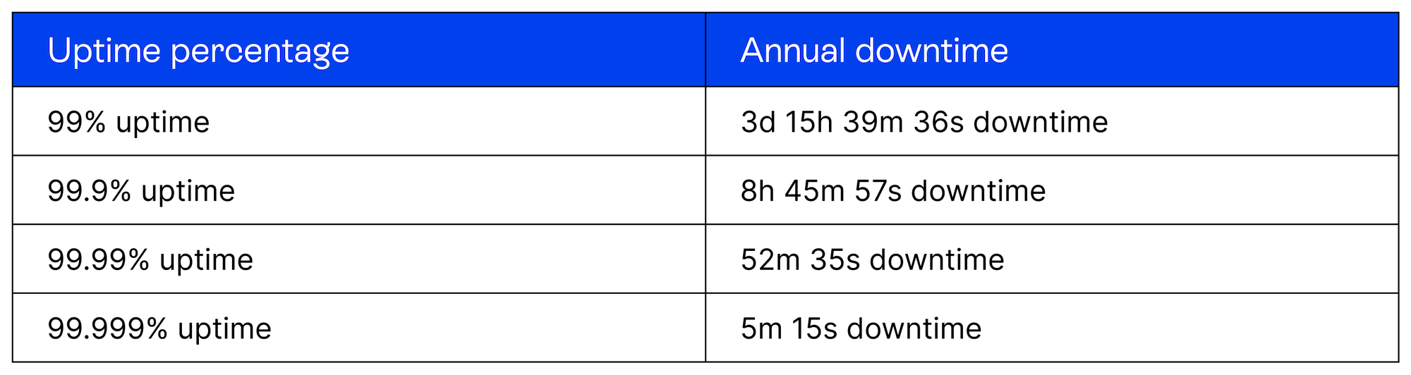 These numbers are accurate (based on the SLA industry-standard calculation of 365.25 days/year). But they don’t tell the whole story, either.