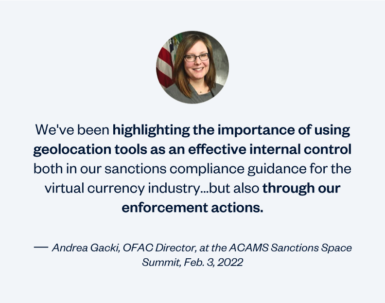 As sanctions against Russia and other jurisdictions increase, OFAC’s virtual currency guidance for building an effective sanctions compliance program becomes even more important. OFAC’s best practices – such as a more advanced geolocation strategy – will help ensure all financial institutions are able to uphold sanctions and AML laws, reduce the risk of enforcement actions, and protect the customers they serve.