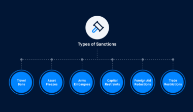 Sanctions can be defined as “punitive and deterrent actions taken by one government or multilateral body (such as the U.N.) against another country, entity or individual.” The figure below identifies the different categories of sanctions: