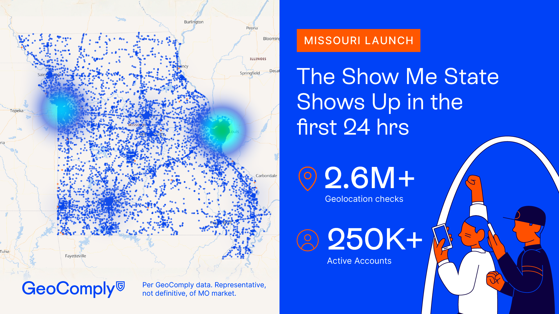 - GeoComply’s Missouri online sportsbook customers recorded more than 2,600,000 geolocation checks statewide in the first 24 hours