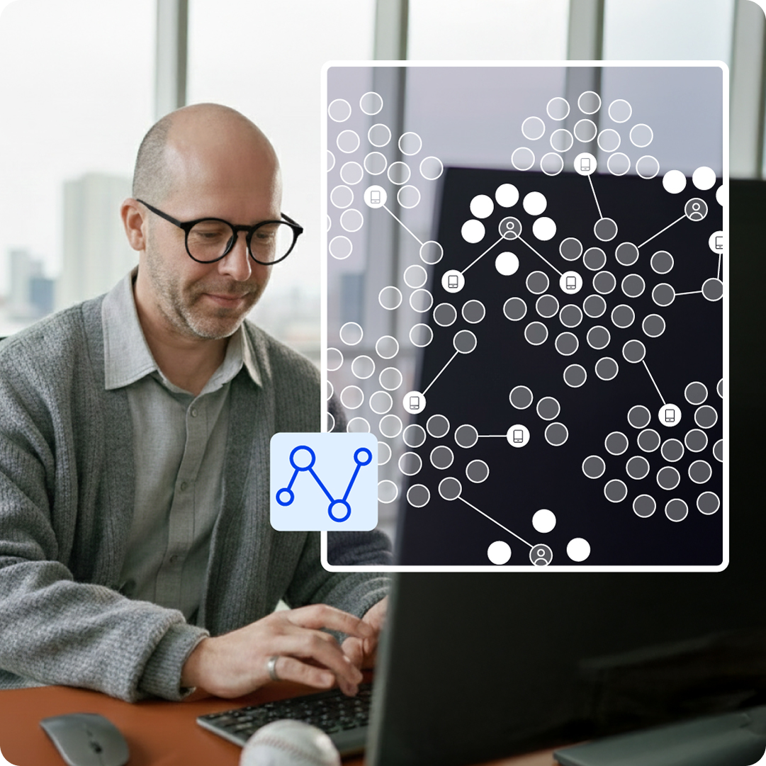 Identify connections between “individuals” to expose entire syndicates. Real-time relationship trees synthesize device, location, and user patterns to instantly flag: